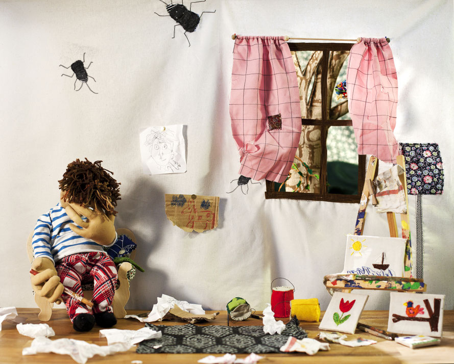 Figuren und Settings der Bilder sind handgenäht und in Stillleben inszeniert und fotografiert. Fotos in Zusammenarbeit mit: Dominik Alves