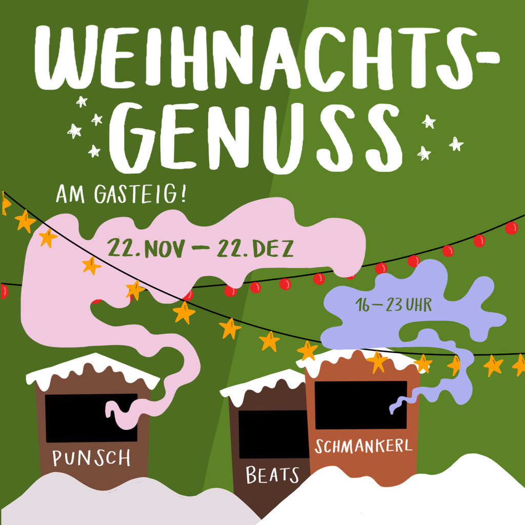 Weihnachtsgenuss am Gasteig Illustration und Gestaltung eines digitalen Logos/Plakatmotivs für den Weihnachtsmarkt der Zwischennutzung „Live Evil“ am Gasteig. Technik: Digitale Zeichnung.